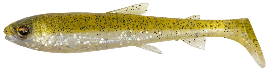 Egy valós fehérhal szkennelése alapján készült ez a laza testű pálcafarok műcsali, amely kifinomult részletekkel és fantasztikus gördülő és rúgó mozgással rendelkezik. A dundi fej és az első testrész sok vizet lövell, ezáltal nagy stabilitást biztosít a sekély szerelés során. Az ízületes és szuperrealisztikus uszonyok remek másodlagos mozgást adnak a nagy pálcafarok rúgásához, amelyben zajos üveg zörgő is található a plusz vonzerő érdekében. Szuperpuha PVC anyagból készült, lenyűgöző színekkel és csábító illattal.
