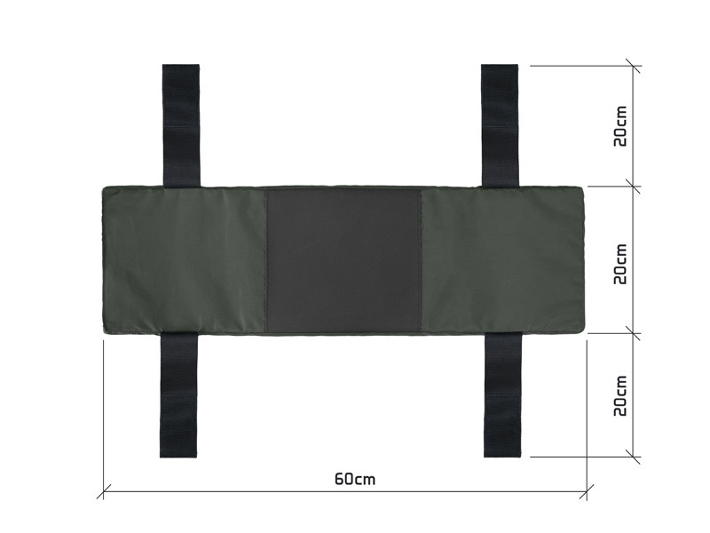 Az alsó oldalon csúszásmentes gumi felület található, amely tökéletes tapadást biztosít a pad felületéhez. A két tépőzáras pánt lehetővé teszi a gyors rögzítést bármely szabványos csónakpadra.