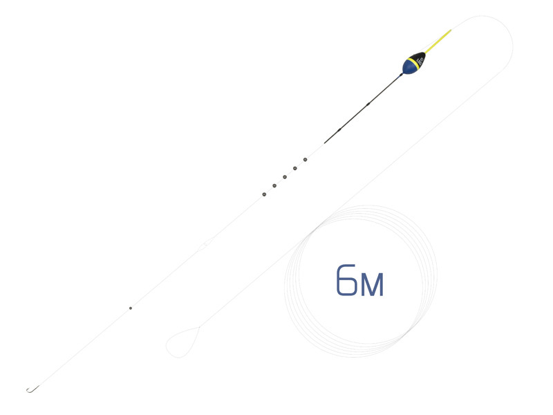 Egy előkötött, 6 m hosszúságú spiccbotos horgászathoz tervezett kész szerelék, amely tartalmaz egy 0,5-3 g súlyú cseppformájú úszót, sörétólmokkal besúlyozva, és egy horgot.