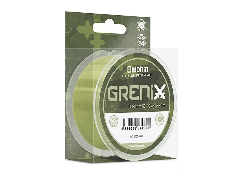 Ez egy sokoldalú monofil zsinór, sok kiváló tulajdonsággal, megfizethető áron. Ellenáll a súrlódásoknak, nagy teherbíró képességgel és magas szakítószilárdsággal rendelkezik. A zsinór nagy kopásálló képessége különösen felértékelődik, ha olyan nehéz körülmények között horgászik, ahol a meder egyenetlen és sok a vízalatti akadó. Puha és finom felületének hála könnyű és távoli dobásokat tesz lehetővé. Ahogy a név is sugallja, a Grenix zöld színű zsinór, amely a legtöbb esetben beleolvad a környezetébe és jól harmonizál a vízzel. A Grenix egy sokoldalú pontyozó zsinór, amely meg fogja lepni azokkal a tulajdonságokkal, amelyekre mindig támaszkodhat.