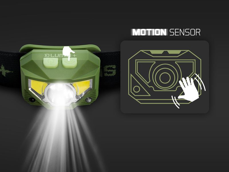 A Delphin LUMIS további előnye a mozgásérzékelő funkció, amelynek köszönhetően egy egyszerű kézmozdulattal be- vagy kikapcsolható a fejlámpa.