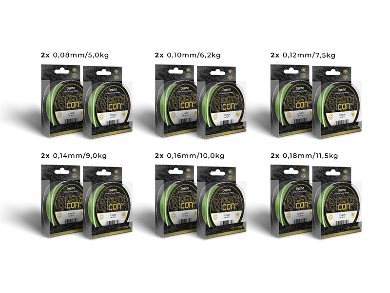 Ismerd meg az összes elérhető átmérő változatot egy praktikus csomagban – a kedvezményes áron kínált limitált Delphin OctaCON Line SET minden elérhető zsinórátmérőt tartalmaz, ráadásul mindegyikből két darabot, azonos színben.