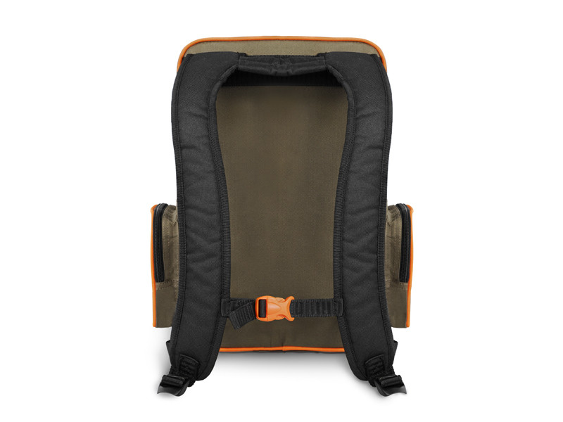 A hátizsákot úgy tervezték, hogy bőséges tároló helyet biztosítson a csalis dobozoknak, kiegészítőknek vagy bármilyen egyéb felszerelésnek, amely a sikeres horgászathoz szükséges. A fő tároló rekesz ferde cipzárral érhető el. Két cipzáras zseb található a táska oldalán. A hasonló árkategóriájú hagyományos hátizsákokhoz képest ennek elöl egy cipzáras zsebe van, amiben egy műcsalik vagy etetőkosarak tárolására alkalmas műanyag doboz található. A hátizsáknak átlátszó borítással rendelkezik, így mindig látni fogja, mi van benne.