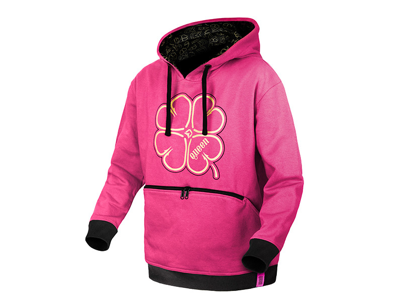 Egy stílusos, eredeti dizájnnal rendelkező kapucnis pulóver; a QUEEN 4Love pulcsiban minden női horgász kényelmesen érezheti magát. Merész rózsaszín színű, fekete elemekkel és sárga nyomattal, hogy mindenhol megforduljanak Ön után.