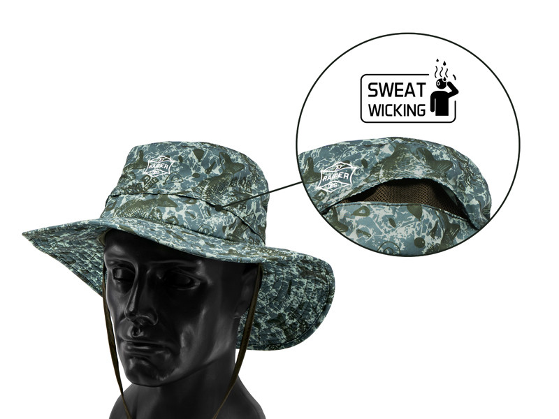A Delphin RAIDER egy stílusos kalap egyedi C2G terepmintában, amely ideális fejvédelmet nyújt napsütéses napokon, akár horgászni, vadászni vagy a tenger mellett nyaralni készül.