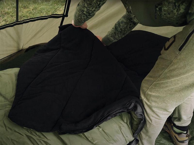 Ebbe a hálózsákba mindkét oldalról könnyű belebújni, hiszen mindkét oldalán találhatók rajta cipzárak. Ezáltal, a sátor bármelyik oldalába helyezheti kempingágyát, és könnyedén a botokhoz ugorhat, ha meghallja a kapásjelző hangját. A mindkét oldalon megtalálható COLDSTOP cipzár szigetelés meggátolja a hideg levegő bejutását a hálózsákba. Ráadásul a cipzárok mindkét oldalon műanyag húzókákkal vannak ellátva a könnyű kezelhetőség érdekében.