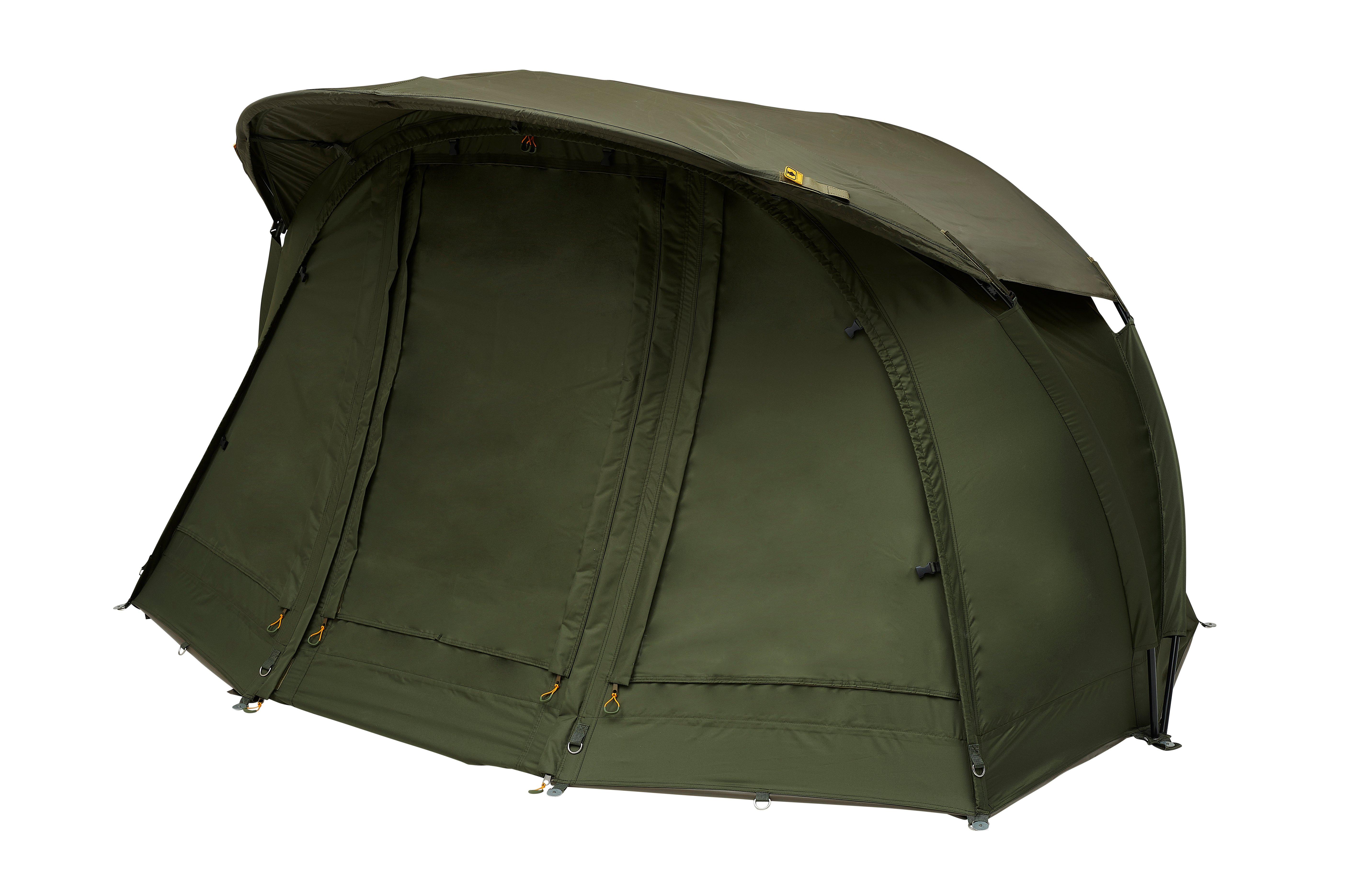 Az Inspire Bivvy új generációja irigylésre méltó mércéket állított fel az innováció és a tervezés terén. A kétbordás konstrukció könnyű és könnyen összeszerelhető menedéket eredményez. Mindkét változat tartalmaz egy feltekerhető ereszt, amely praktikus az olyan szép időben eltöltött rövid horgászatokhoz, ahol nincs szükség kiterjesztett védelemre. Teljes Pro-Vent rendszer - egy nagy hátsó szellőző és 2 további oldalsó szellőző biztosítja a legjobb, 360 fokos szellőzést. Ez maximalizálja a levegőcserét, csökkenti a páralecsapódást és javítja a kilátást, valamint hűvösebbé teszi sátrunkat a meleg hónapokban. A Pro-Tect nagy teherbírású, cipzáras talajponyva segít megelőzni a bogarak vagy a víz behatolását, és rendkívül erős cipzárakkal van felszerelve, 10 cm-rel a talajszint felett. Az Inspire Bivvy új, korszerű Pro-Tex szövetünkkel lélegző, könnyű, rendkívül tartós és 20 000 mm-ig vízálló. A levehető elülső panel hálós ajtóval és ablakokkal rendelkezik. A panelt kettős cipzáras ajtókkal látták el, amelyek lehetővé teszik a postaláda stílusú kinyitást, és nagyobb védelmet nyújtanak az elemek ellen. Az egyszemélyes sátorhoz tartozó esőponyvát és a kétszemélyeshez tartozó téli ponyvát is vízálló és nagyon tartós 210D szövetből készítették. 10 000 mm-es víztaszító tető résszel. A Pro-Tex 20.000mm anyaggal kombinálva sokkal hatékonyabban biztosítja a belső bivvy kapszula lélegzését. Mivel a légcsere intenzitását nagymértékben csökkenti a ponyvákhoz használt 210D szövet, így sokkal lassabb és progresszívebb légcserét biztosít, ami drámai módon elszigeteli a belső levegőt a külső léghőmérséklettel szemben, és kiváló szigetelést eredményez. Ez a folyamat rendkívül csökkenti a nedvességet és a páralecsapódást. Ez a rendszer tovább optimalizálható, ha a Pro-Vent rendszerrel együtt használják, lehetővé téve a szellőzőnyílások nyitva tartását a meleg és párás napokon.