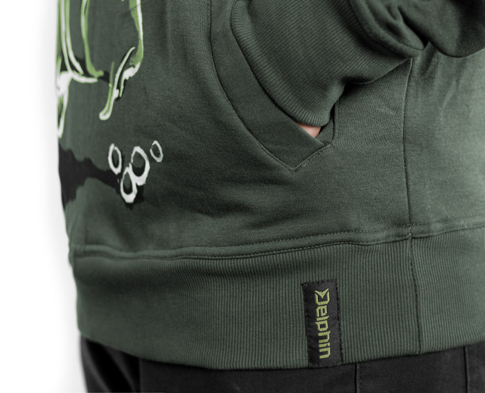 Pulóver Delphin CATCH ME! elegáns, egyedülálló pulóverek sorozata. CATCH ME IF YOU CAN (kapj el, ha tudsz), ponty ábrázolásával egy szokatlan része lesz ruhatárának. A pontyminta az egész testen, alján megy körül. A ponty vázlatként vagy festményként jelenik meg, miközben megőrzi az összes fontos részletet. A pontyot olyan helyzetben jelnitti meg, amikor egy marék bojlihoz közelít, pontosan abban a pillanatban, amit mindannyian várjunk a parton. Maga a pulóver kiváló minőségű, úgy mint a használt színes nyomtatás is.