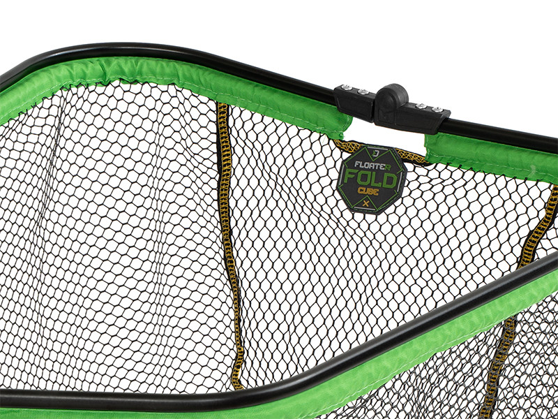 Lebegő kialakítású, négyzet alakú merítőhálófej a REAXE sorozatból, könnyű, de masszív fekete alumínium kerettel. A FloateR FoldCUBE hálója gumival borított, ezért nem szívja magába a vizet és gyorsan szárad. Ráadásul a keret alsó része teljes egészben zöld szövettel borított, a tartósság növelése érdekében.