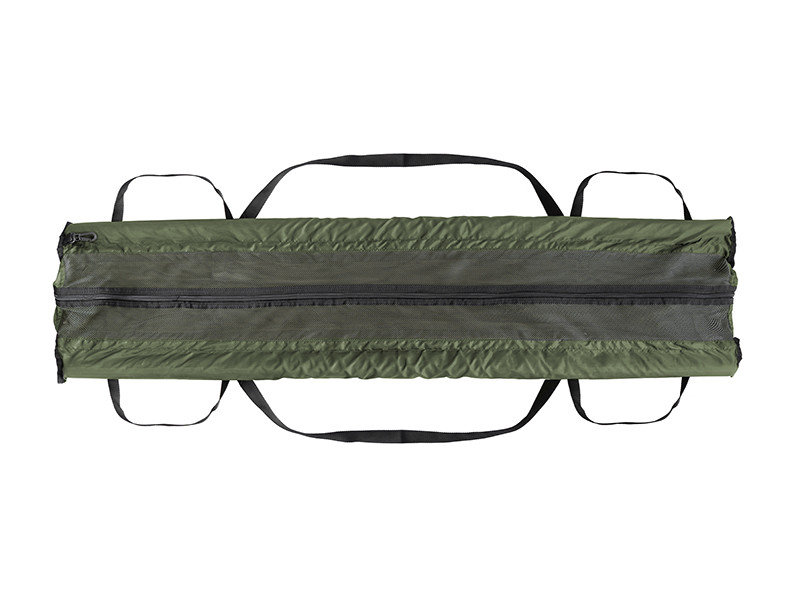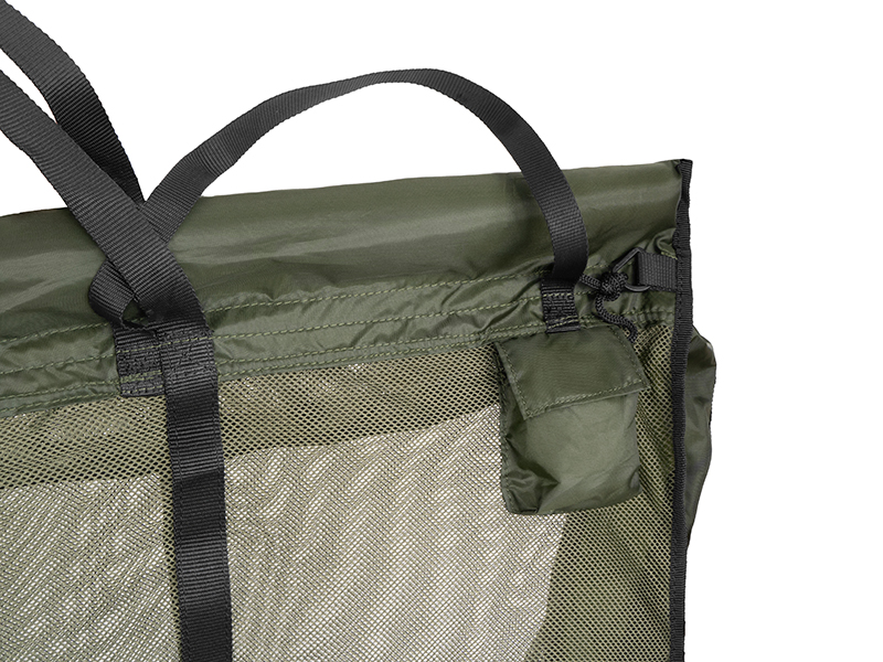 A háló két fekete textil hevederrel van megerősítve, amelyek a középső fogantyúba futnak. A hosszú fogantyúknak köszönhetően a zsák könnyen felakasztható a mérlegre. A zsák emellett mindkét oldalán textil fogantyúkkal van ellátva, amelyek egyszerű emelést és szállítást biztosítanak. Az erős cipzárak mindkét oldalon és a felső részen találhatók, ami azt jelenti, hogy a CWS szinte teljesen kicipzározható a hal könnyebb kezelése érdekében.