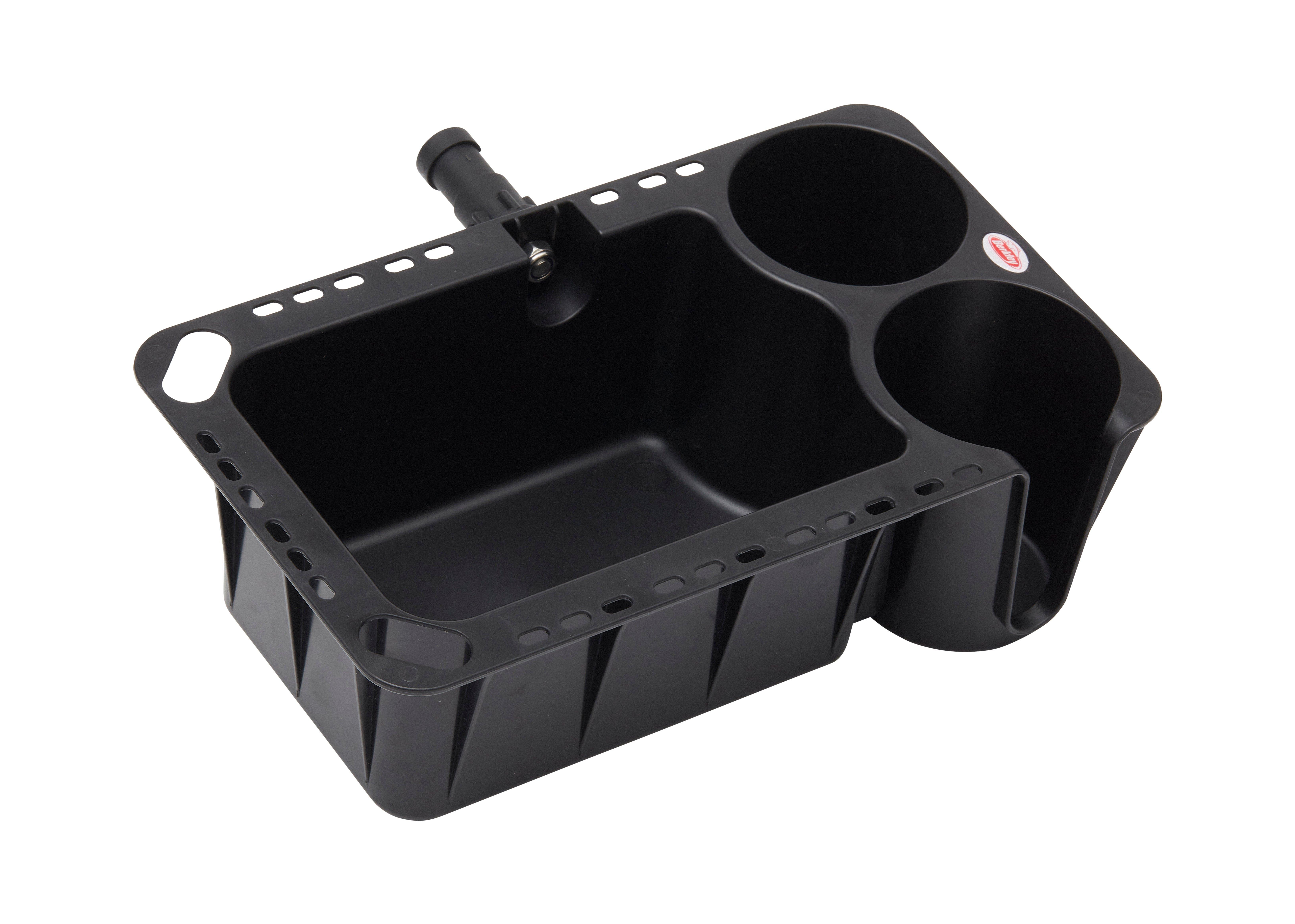 Tökéletes tároló egy pohár, italos üveg, autókulcs, mobiltelefon vagy bármilyen más kis értékes tárgy számára, amelyet a hajóról való horgászat közben elérhető közelségben szeretnél tartani. Olyan oszlopokkal szállítjuk, amelyek a tároló aljára vagy oldalára rögzíthetők, attól függően, hogy hogyan és hol szeretnéd elhelyezni a csónakban. Nem kevesebb, mint 25 lyukkal a peremén csalik felakasztásához. Két nagyobb lyuk is van, amelyek ideálisak a horgászfogók számára. Apró vízelvezető lyukakkal az alján.