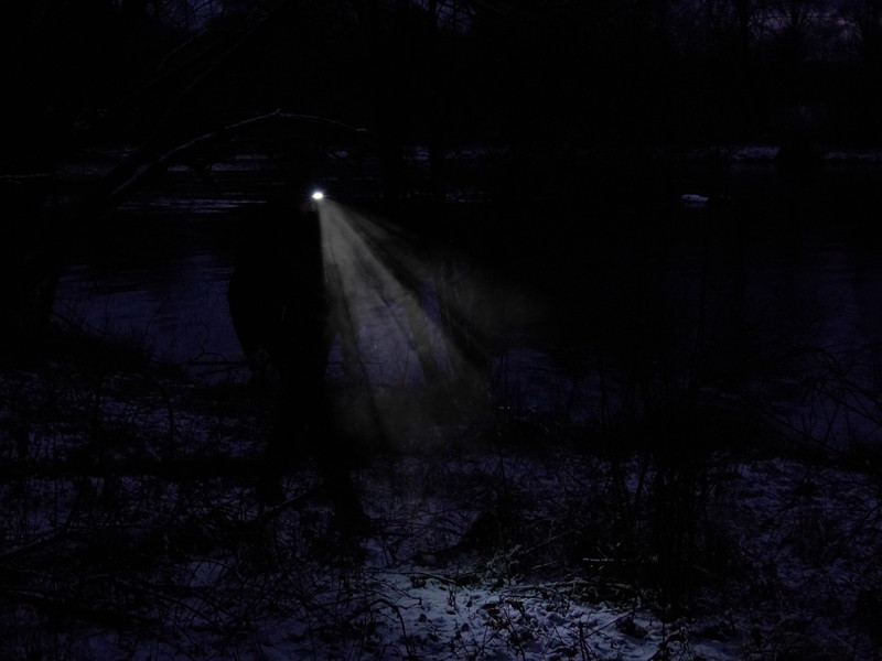 Egy praktikus terepszínű baseballsapka karimájában LED lámpával, ami minden szenvedélyes horgász számára hasznos viselet.