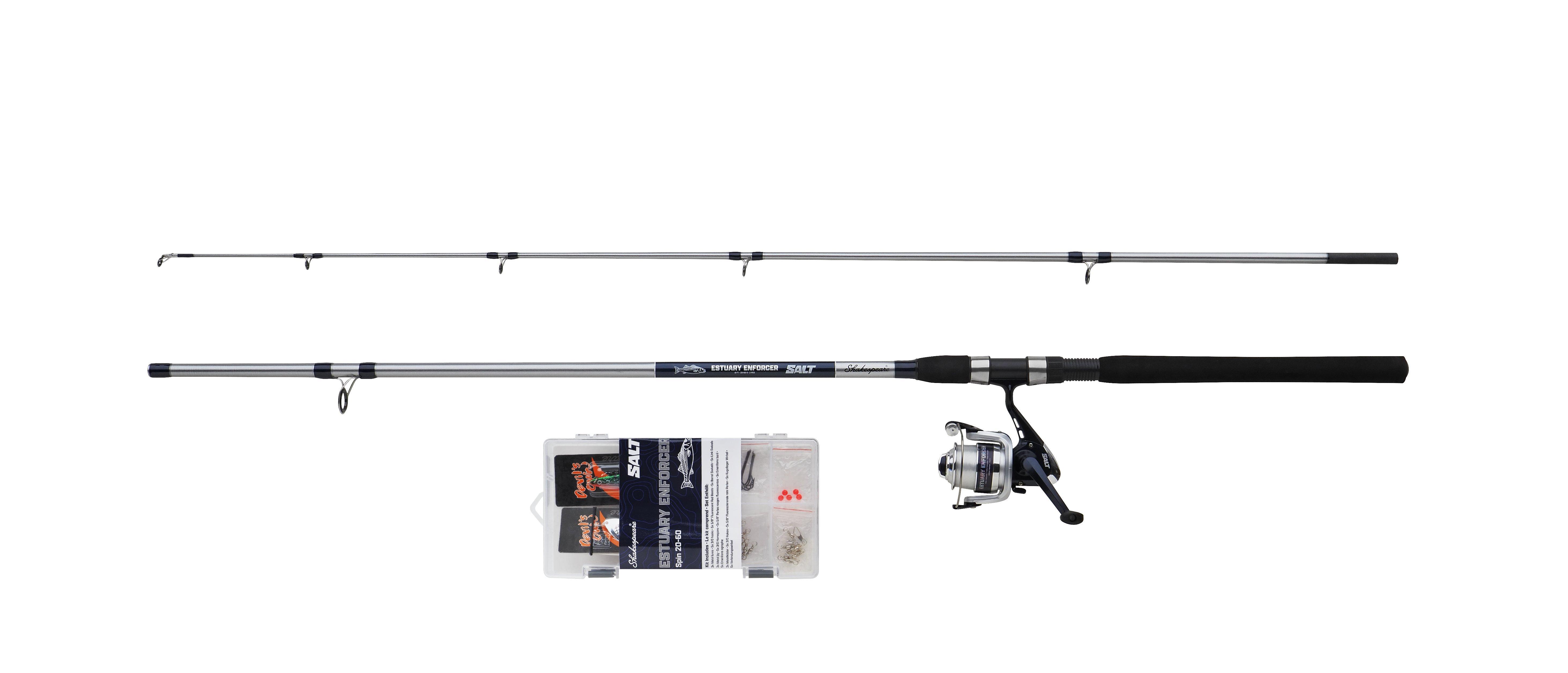 A Shakespeare SALT Estuary Enforcer egy horgászatra kész kombó azoknak a horgászoknak, akik a torkolatokban szeretnék kipróbálni a tengeri sügér, lepényhal, vagy bármely más faj horgászatát anélkül, hogy közvetlenül nagy összegeket költenének. Az erős üvegszálas bot rozsdamentes acél gyűrűkkel van felszerelve, és ergonomikusan kialakított, nagy sűrűségű EVA nyéllel rendelkezik. Az erős grafit orsó teljesen fel van töltve jó minőségű monofil zsinórral, hogy biztos lehess benne, hogy a legnagyobb halakat is vissza tudod majd csévélni a torkolatokban! Hogy minden teljes legyen, mellékeltünk hozzá egy felszerelésdobozt az összes végszerelékkel, amelyre szükséged lehet, hogy közvetlenül elkezdhesd a horgászatot.