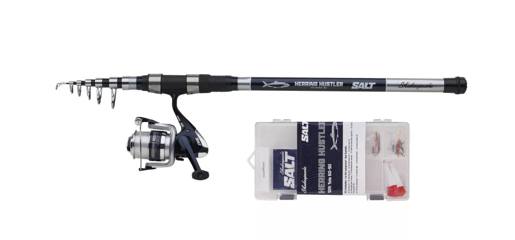 A Shakespeare SALT Herring Hustler kombó egy horgászatra kész kombó azoknak a horgászoknak, akik szeretnék kipróbálni a heringhorgászatot anélkül, hogy közvetlenül nagy összegeket költenének. Az erős üvegszálas bot rozsdamentes acél gyűrűkkel van felszerelve, és teleszkópos jellegének köszönhetően könnyen tárolható. Az erős grafit orsó teljesen fel van töltve jó minőségű monofil zsinórraal, hogy biztos lehess benne, hogy minden heringet fel tudsz tekerni, amit a kékségben horogra akasztasz. Hogy a kombó teljes legyen, mellékeltünk hozzá egy felszerelésdobozt az összes végszerelékkel, amelyre a rengeteg hering fogásához szükséged lehet; 2 heringező ólom, 2x heringező szerelék, 5x forgó és 5 extra horog!