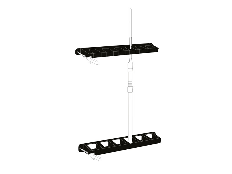 Praktikus bottartó mely csavarok segítségével felfogatható a falra. Két különálló részből áll, melyek nagyon erős és ellenálló műanyagból készültek. A felső rész puha habbal van ellátva, így botjai a tartóban védve lesznek.