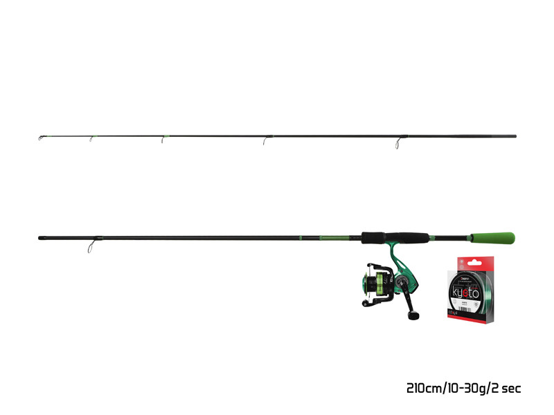Ha nem tudod eldönteni, hogyan kombinálj össze egy megbízható pergető szettet, akkor a Delphin GreenSPIN pergető szett pont neked való. A készlet egy kétrészes Delphin WASABI Spin NXT botból áll, a blank ideális arányú kompozit anyagokból készült. Az EVA habból készült nyél harc közben, de dobáskor is jól illeszkedik a kézbe. A bot akciója kellemes, a bónusz pedig a kerámiabetét nélkuli gyűrűsor, aminek köszönhetően nem kell feleslegesen félni azok nem kívánt sérülésétől. A bot érzékeny hegye ideális csalivezetést garantál, emellett még a finomabb kapásokat is érzékeli. A Delphin ELIXIR orsó zöld-fekete kialakításával tökéletesen illeszkedik a készletbe. A könnyű kompozit anyagból készült test hosszú élettartamot garantál. A 3 + 1 golyóscsapágy az 5,0:1 áttétellel és a kiegyensúlyozott rotor garantálja a csendes és sima járást szép zsinórképpel. Az orsó kapacitása az adott horgásztechnikához elegendő, 0,16 mm zsinórból, akár 300 m zsinór is elfér rajta. Természetesen ahhoz, hogy a szett teljes legyen, nem hiányozhat a minimális nyúlású KYOTO zsinór sem, amely garantálja az azonnali reakciót a kapásra. A pergető szettet a ragadozó horgászattal foglalkozó horgászok széles köre fogja kedvelni.