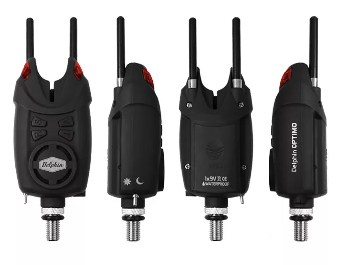A szlovák Delphin Optimo 9V kapásjelző és ellenőrzött,érzékeny vevő szettje 2016 egyik újdonsága.A neve is mutatja,hogy 9V elemmel működik,mely garantálja tartósságát és a szett legnagyobb előnyei közé tartozik.Magas szintű gyártási technológiával készültek a jelzők,rossz időjárásnak és esőnek ellenállnak.Egyszerűen és könnyen használhatók,a hangerő(lehetőség van a néma üzemmódra),és a hangszín szabályozható,valamint a kapás érzékenysége,melyet a horgászok értékelni fognak.A szett lehetőséget nyújt még mind hang-mind fény alapú jelzésre 200 méteren belül.A világítós swingerek részére tartalmaz egy csatlakoztatót is. A szett tartalma:vevő,kapásjelző,swinger és Snag Gear, a megvett kapásjelzők számával megegyező számban.