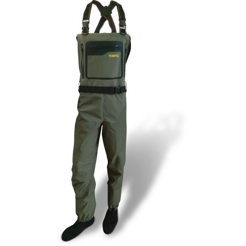 Lélegző és magas szabású erős, PVC gázlónadrág neoprém csizmával. Mindegy, hogy erős esőben, halak visszaengedésénél, folyami pergetésnél, vagy Belly Boat-os, kajakos horgászatnál használjuk, a Black Cat gázlónadrág mindenhol szárazon tart. A térd- és a fenékzónákban megerősítéssel rendelkezik, és véd az éles kövektől és kagylóktól. Ajánljuk, hogy egy neoprém csizmás gázlónadrágos bevetés után ugorjon egy Black Cat papucsba, vagy vízálló cipőbe.