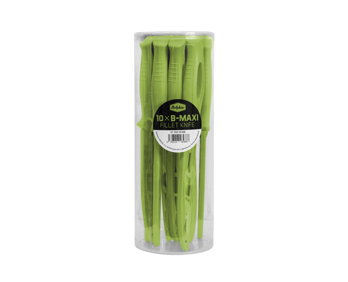 Egyszerű filéző kés B-MAXI extra flexi pengével, melynek segítségével gyorsan kifilézi a halat vagy elkészíti a húst. A penge és a tok kirívó zöld színű, így nem veszik el a horgász kellékei között. Nagyszerűen megállja a helyét műhelyében vagy kertjében is. Nagyon könnyű, biztonságos műanyag tokkal kapható.